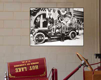 | Don Keeling, director and curator of the Eastern Oreegon Fire Museum commissioned Gildemeister to assist him with the museum's layout and display design along with production of photo images for the visitor center exhibits to complement the museum's collection of fire-fighting and law enforcement artifacts and restored vehicle fleet. In addition to the use of selected images from Gildemeister's stock photo file, the project included scanning, restoring, and enhancing an assortment of photo images from the museum's collection for the exhibit areas.