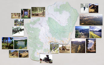 with present-day forest views and activities photos from Gildemeister stock file archive and local outdoor organizations |