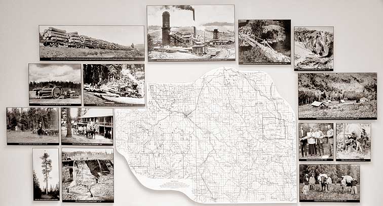 | After remodeling was completed for the US Forest Service office in La Grande, Oregon, Gildemeister was commissioned to layout and design photo decor for the building's entry foyer, reception area, conference room, hallways, and some office areas. A conceptural design was developed to showcase the forest activity from early-day pioneer settlement through present times. After photo images were selected from Gildemeister's extensive stock file, work commenced with the creation of photo montages and murals which were archively printed, mounted, and installed within the prescribed areas.