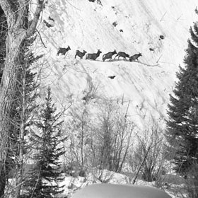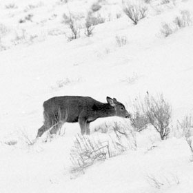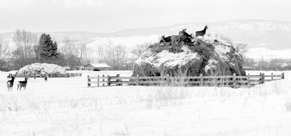 Mule Deer feeding on Haystacks - Union, Oregon 1989